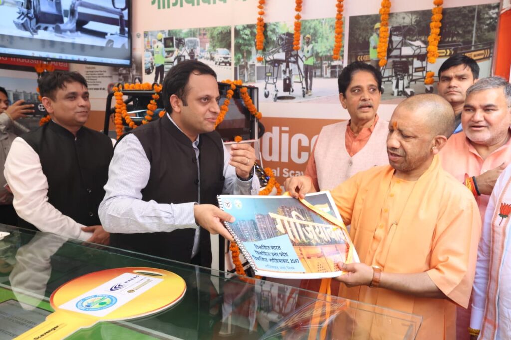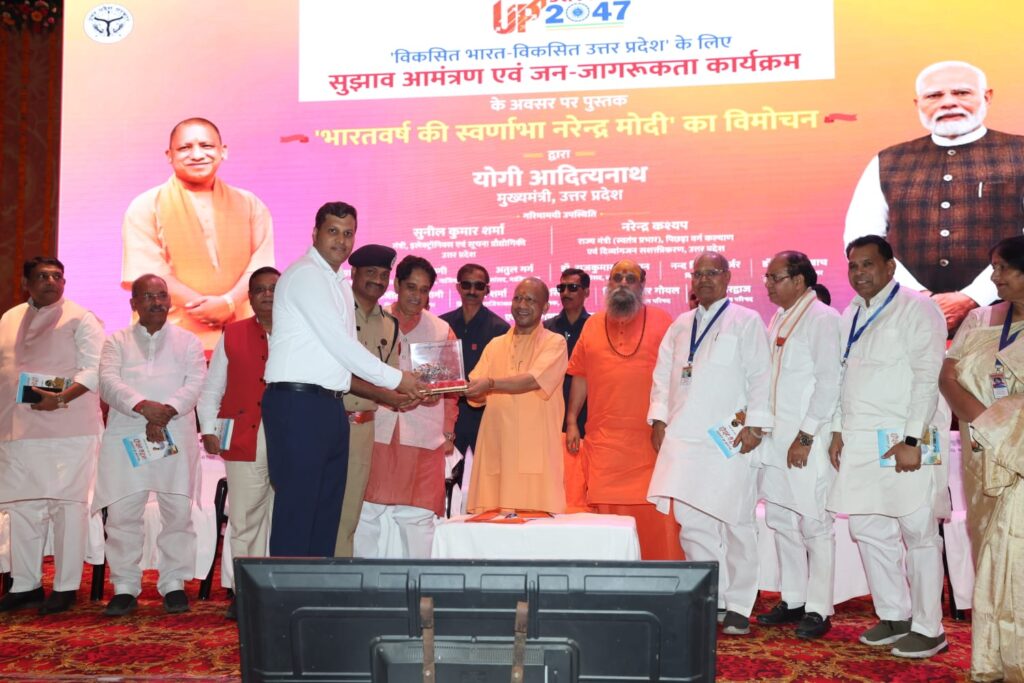 Ghaziabad news मुख्यमंत्री योगी आदित्यनाथ ने शुक्रवार को गाजियाबाद के पंडित दीनदयाल उपाध्याय आॅडिटोरियम में विकसित भारत-विकसित उत्तर प्रदेश @2047 जन-जागरूकता कार्यक्रम में पूर्व सांसद रमेश चंद्र तोमर की लिखित पुस्तक भारतवर्ष की स्वणार्भा नरेंद्र मोदी का विमोचन किया। उन्होंने जनता से आह्वान किया कि “अब भारत को विकसित राष्ट्र बनाने की जिम्मेदारी हम सभी की है।”
