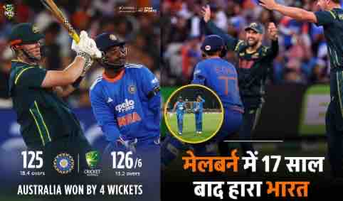 लक्ष्य का पीछा करते हुए ऑस्ट्रेलिया को ट्रेविस हेड और मार्श ने 50 से ज्यादा रनों की साझेदारी देकर मजबूत शुरुआत दी। हालांकि, बाद में जसप्रीत बुमराह ने दो विकेट लेकर वापसी की कोशिश की, लेकिन मार्कस स्टोइनिस और मिशेल ओवेन ने नाबाद रहकर मैच को आसानी से खत्म कर दिया। यह भारत की टी20 में शिवम दुबे के साथ खेलते हुए पहली हार थी, जो 2153 दिनों के बाद आई। सोशल मीडिया पर फैंस ने अभिषेक शर्मा की तारीफ की, लेकिन कप्तान सूर्यकुमार यादव की हालिया फॉर्म (पिछले 15 टी20 में औसत 12) पर सवाल उठाए।