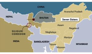 सिलीगुड़ी कॉरिडोर और उत्तर-पूर्व की रणनीतिक स्थिति दिखाता नक्शा