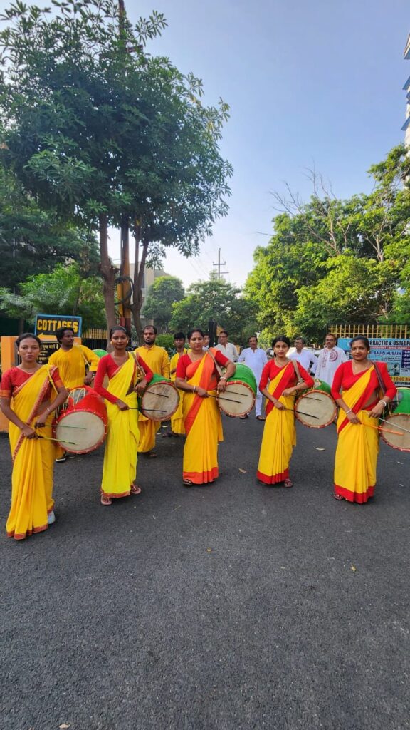 Ghaziabad news बंगोतरु पूजा समिति ने इंदिरापुरम स्थित शिप्रा सनसिटी में आध्यात्मिक प्रभात फेरी निकालकर शनिवार को बंगोतरु दुर्गा पूजा 2025 का शुभारंभ किया गया। महिलाओं ने ढाक बजाकर नारी सशक्तिकरण का संदेश दिया।
