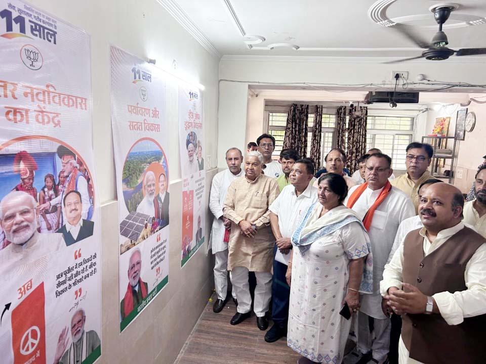 ghaziabad news भारतीय जनता पार्टी (भा.ज.पा.) के नेहरू नगर स्थित जिला मुख्यालय में भाजपा महानगर अध्यक्ष मयंक गोयल के नेतृत्व में प्रधानमंत्री नरेंद्र मोदी सरकार के 11 वर्षों की उपलब्धियों पर आधारित एक विशेष प्रदर्शनी का आयोजन किया गया।
