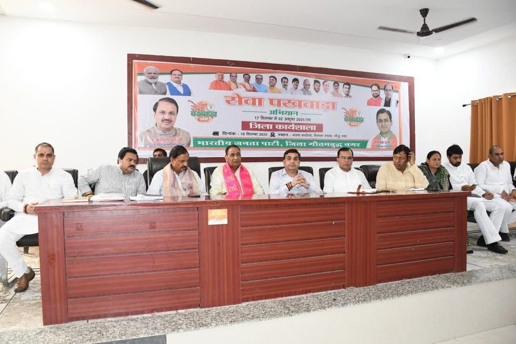 Dadri News: भारतीय जनता पार्टी ने जिला कार्यालय तिलपता गोलचक्कर में कार्यशाला बैठक आयोजित की, जिसमें आगामी कार्यक्रमों, सेवा पखवाड़ा और स्नातक, शिक्षक एवं पंचायत चुनाव की तैयारियों पर चर्चा हुई। बैठक की अध्यक्षता जिला अध्यक्ष अभिषेक शर्मा ने की और संचालन जिला महामंत्री धर्मेन्द्र कोरी ने किया।