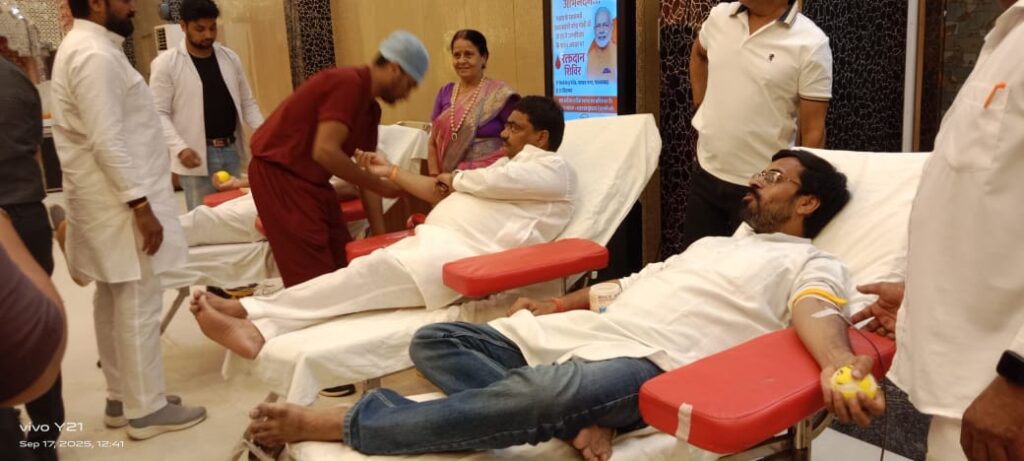 ेसेवा पखवाड़ा में विधानसभा के पांचों मंडलों के अध्यक्ष और कार्यकर्ताओं ने अहम भूमिका निभाई। शिविर में 155 यूनिट रक्तदान के साथ-साथ विकलांगजनों को ट्राइसाइकिल, हाथ की छड़ी, बेल्ट, कान की मशीन आदि उपकरण वितरित किए गए।