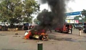 टाटानगर रेलवे स्टेशन के बाहर लगी कार में आग, यात्रियों में मचा हड़कंप