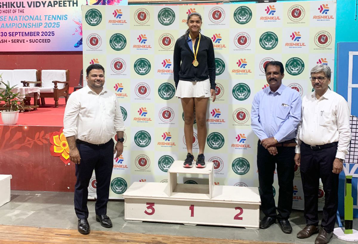 Noida Tennis National Player: दिल्ली पब्लिक स्कूल नोएडा की 15 वर्षीय टेनिस खिलाड़ी अनन्या जैन ने सीबीएसई अंडर-17 गर्ल्स टेनिस नेशनल्स 2025 में शानदार प्रदर्शन करते हुए सिग्लस ग्रुप में गोल्ड पदक अपने नाम करा लिया। डबल्स वर्ग में में कांस्य पदक जीतकर स्कूल और शहर का नाम रोशन किया है। यह प्रतिष्ठित प्रतियोगिता 23 से 30 सितम्बर तक ऋषिकुल विद्यापीठ, सोनीपत में आयोजित हुई। अनन्या जैन लार्ड महावीर स्कूल के चैयरमेन पीके जैन की पौती है जबकि डायरेक्टर विशाल जैन की बेटी है।