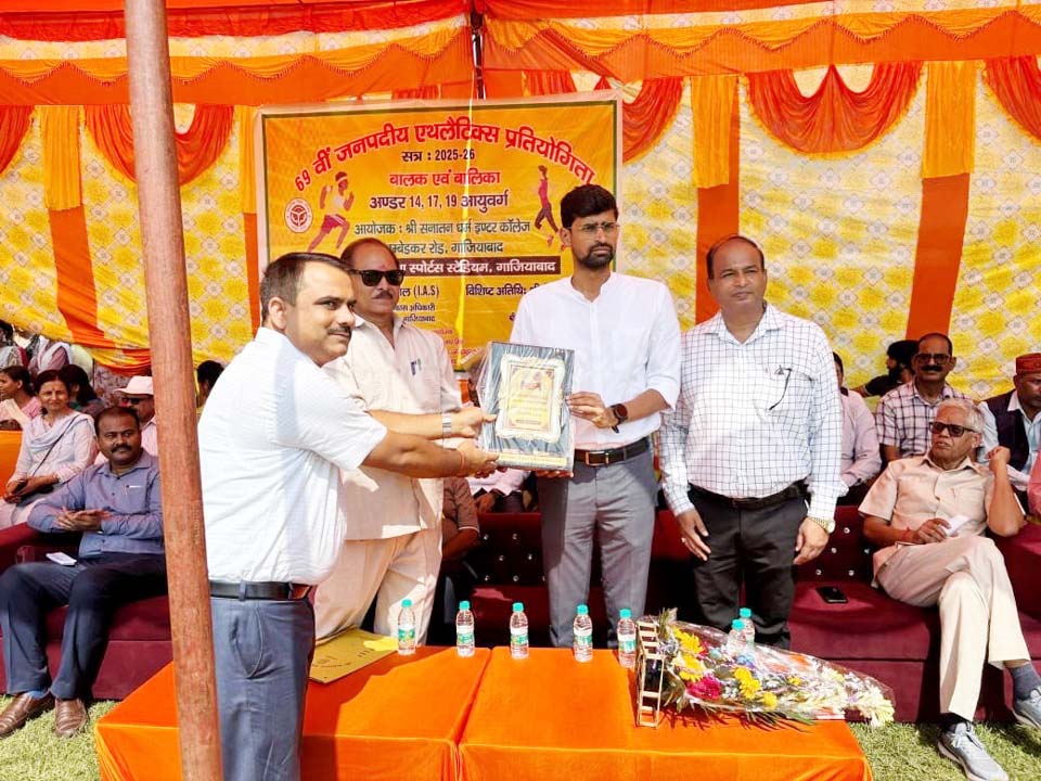 Ghaziabad newsमुख्य विकास अधिकारी अभिनव गोपाल ने मंगलवार को सनातन धर्म इंटर कॉलेज की 69वीं जनपदीय एथलेटिक्स प्रतियोगिता का महामाया स्टेडियम में शुभारंभ किया। प्रतियोगिता की अंडर-17 बालक और बालिका वर्ग की 800 मीटर दौड़ को हरी झंडी दिखाकर रवाना किया।