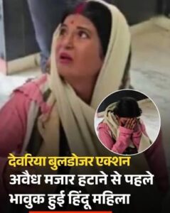 Deoria Mazar Case: उत्तर प्रदेश के देवरिया में हजरत शहीद सैय्यद अब्दुल गनी शाह बाबा की मजार पर अवैध कब्जे के आरोप में बुलडोजर कार्रवाई के दौरान एक हिंदू महिला का भावुक वीडियो सोशल मीडिया पर खूब वायरल हो रहा है। महिला का नाम रानी तिवारी है, जो अपने 12 साल के बेटे के साथ मजार पर पहुंची थीं। मजार को आंशिक रूप से ढहाया देख वे फूट-फूटकर रो पड़ीं और बाबा से हुई मन्नत का किस्सा सुनाकर सभी को भावुक कर दिया।