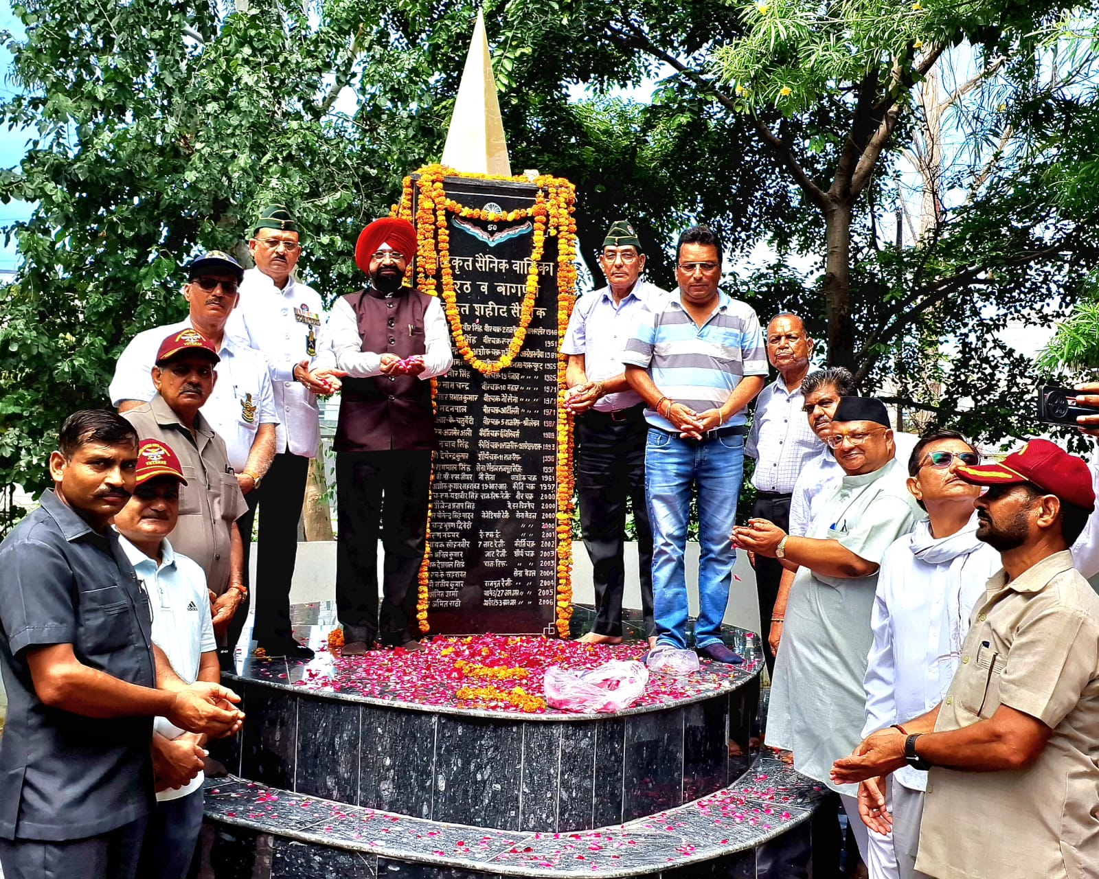 meerut news पंडित प्यारेलाल शर्मा मेमोरियल ट्रस्ट समिति की ओर से आॅपरेशन विजय कारगिल युद्ध की 26वीं वर्षगांठ पर जिला सैनिक कल्याण एवं पुनर्वास कार्यालय के सम्मुख स्थित अलंकृत सैनिक वाटिका एवं बलिदानी मनोज तलवार की प्रतिमा पर भी पुष्पांजलि अर्पित की गई।