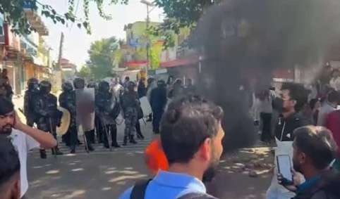 प्रदर्शनकारियों ने सिमरा चौक पर दोपहर करीब 11 बजे इकट्ठा होना शुरू किया, जिसके बाद पुलिस ने बल प्रयोग कर उन्हें खदेड़ दिया। स्थिति बिगड़ने पर स्थानीय प्रशासन ने दोबारा कर्फ्यू लगा दिया है।
