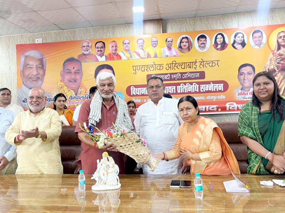 modinagar news विधानसभा क्षेत्र के ब्लॉक भोजपुर में पुण्यश्लोक अहिल्याबाई होलकर की 300वीं जयंती पर विधानसभा स्तरीय पंचायत प्रतिनिधि सम्मेलन का भव्य आयोजन किया गया। मुख्य अतिथि अवनीश त्यागी (प्रदेश प्रवक्ता), चौधरी चैनपाल सिंह (जिलाध्यक्ष, जिला गाजियाबाद) ने कार्यक्रम का शुभारंभ किया।