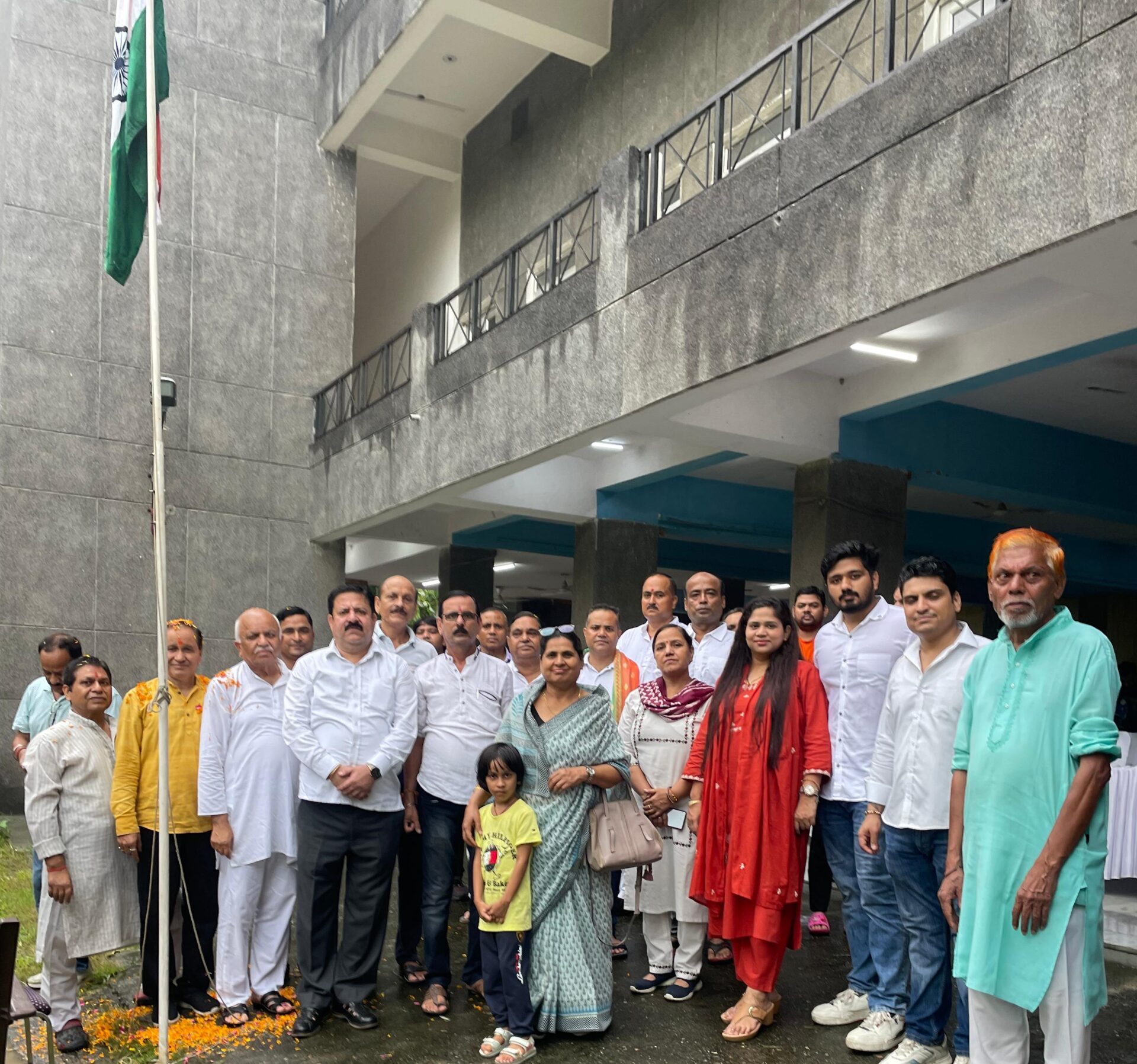 नोएडा भाजपा पार्टी कार्यालय पर जिला अध्यक्ष नोएडा महेश चौहान जी ने पदाधिकारी के साथ ध्वजारोहण किया