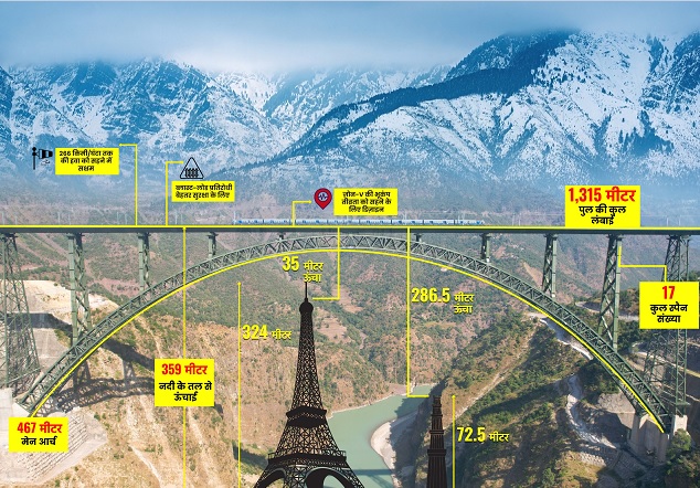 चिनाब ब्रिज की प्रमुख विशेषताएँ: