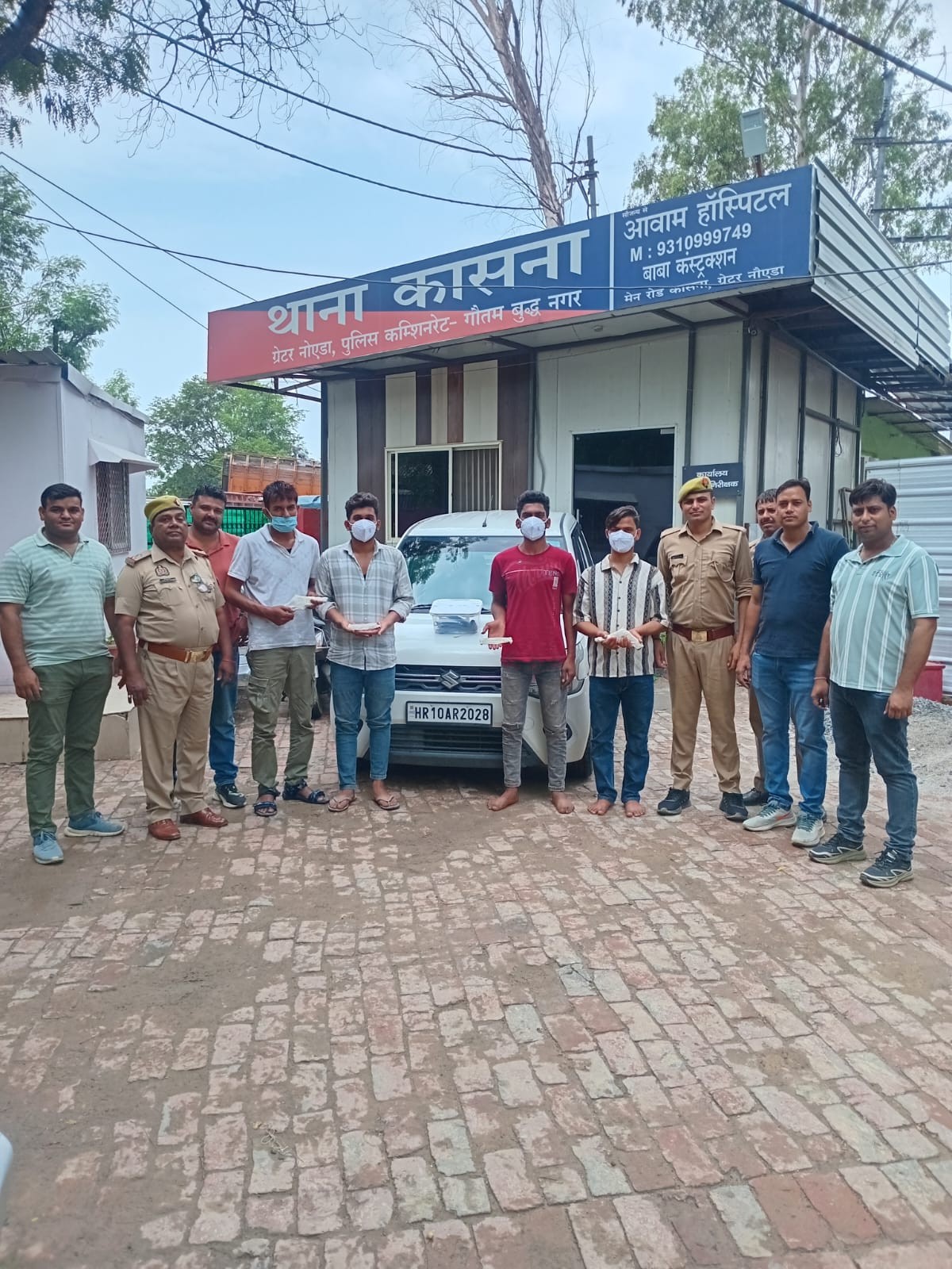 Noida news : थाना कासना पुलिस ने चेकिंग के दौरान चोरी की योजना बनाते हुए 4 अभियुक्तों को गिरफ्तार कर उनके कब्जे से चोरी करने के उपकरण व अवैध हथियार और कार बरामद की हैं।
