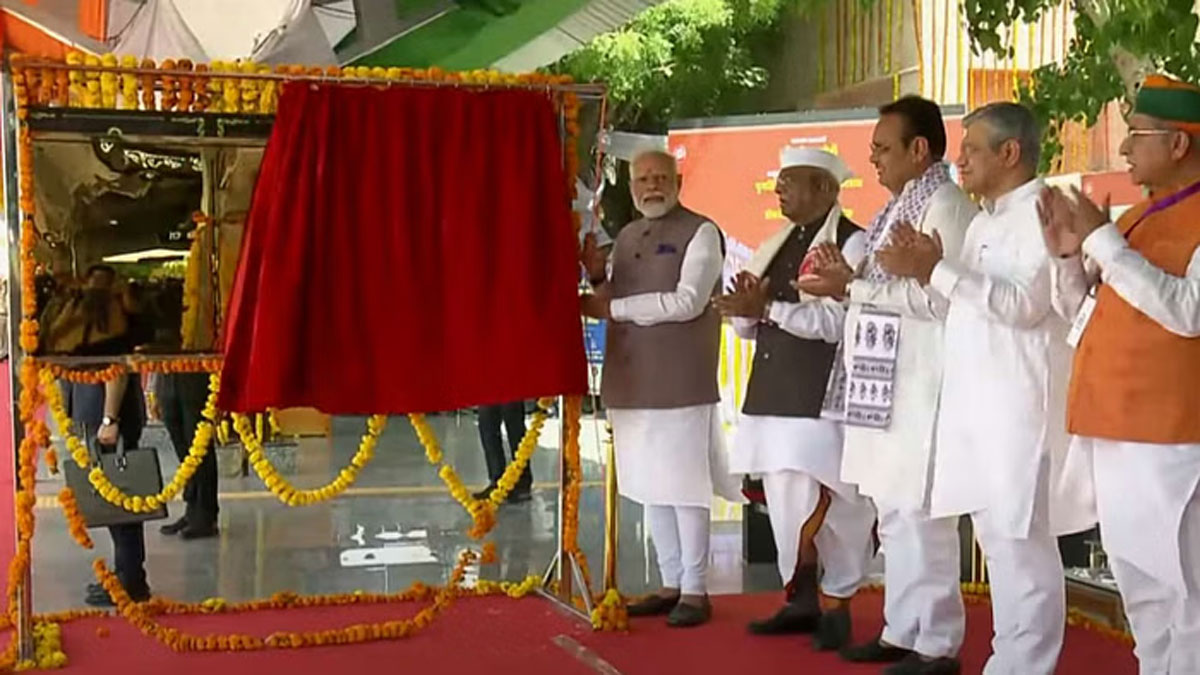 PM Modi In Rajasthan: पीएम नरेंद्र मोदी आज यानी बृहस्पतिवार को राजस्थान के बीकानेर में हैं। पाकिस्तान के खिलाफ चालाए गए ऑपरेशन संदूर के बाद यह उनका पहला राजस्थान दौरा है। इस दौरान उन्होंने अमृत भारत स्टेशन योजना के तहत नए तरीके से तैयार किए गए। पीएम मादी ने देशनोक रेलवे स्टेशन का उद्घाटन किया। साथ ही उन्होंने वर्चुअल तरीके से 18 राज्यों और केंद्र शासित प्रदेशों के 86 जिलों में बने 103 अमृत रेलवे स्टेशनों का भी उद्घाटन किया। प्रधानमंत्री नरेंद्र मोदी अब जनसभा को संबोधित कर रहे हैं। यहां राजस्थान के मुख्यमंत्री भजनलाल शर्मा ने उन्हें साफा पहनाकर सम्मानित किया और उन्हें चरखा भेंट किया।