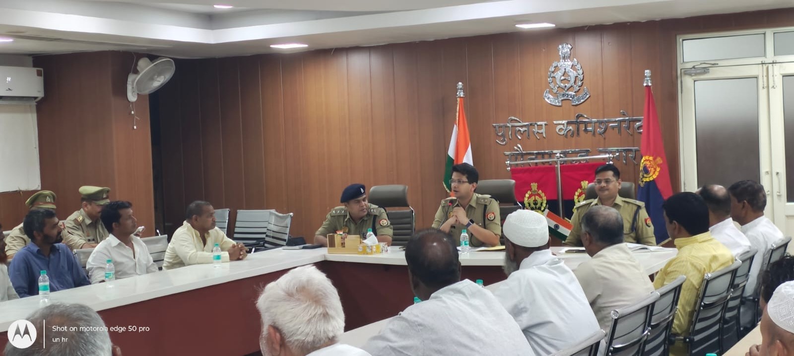 Noida News: पुलिस कमिश्नर लक्ष्मी सिंह के निर्देशन में पुलिस उपायुक्त सेंट्रल नोएडा शक्ति मोहन अवस्थी द्वारा अपर पुलिस उपायुक्त सेंट्रल नोएडा हृदेश कठेरिया व एसीपी तृतीय सेंट्रल नोएडा बीएस वीर कुमार के साथ पुलिस कार्यालय सूरजपुर पर धर्म गुरूओं व संभ्रांत नागरिकों के साथ मोहर्रम के दृष्टिगत पीस कमेटी की मीटिंग की गयी।