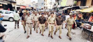 त्योहारों को लेकर पुलिस ने की पैदल गस्त