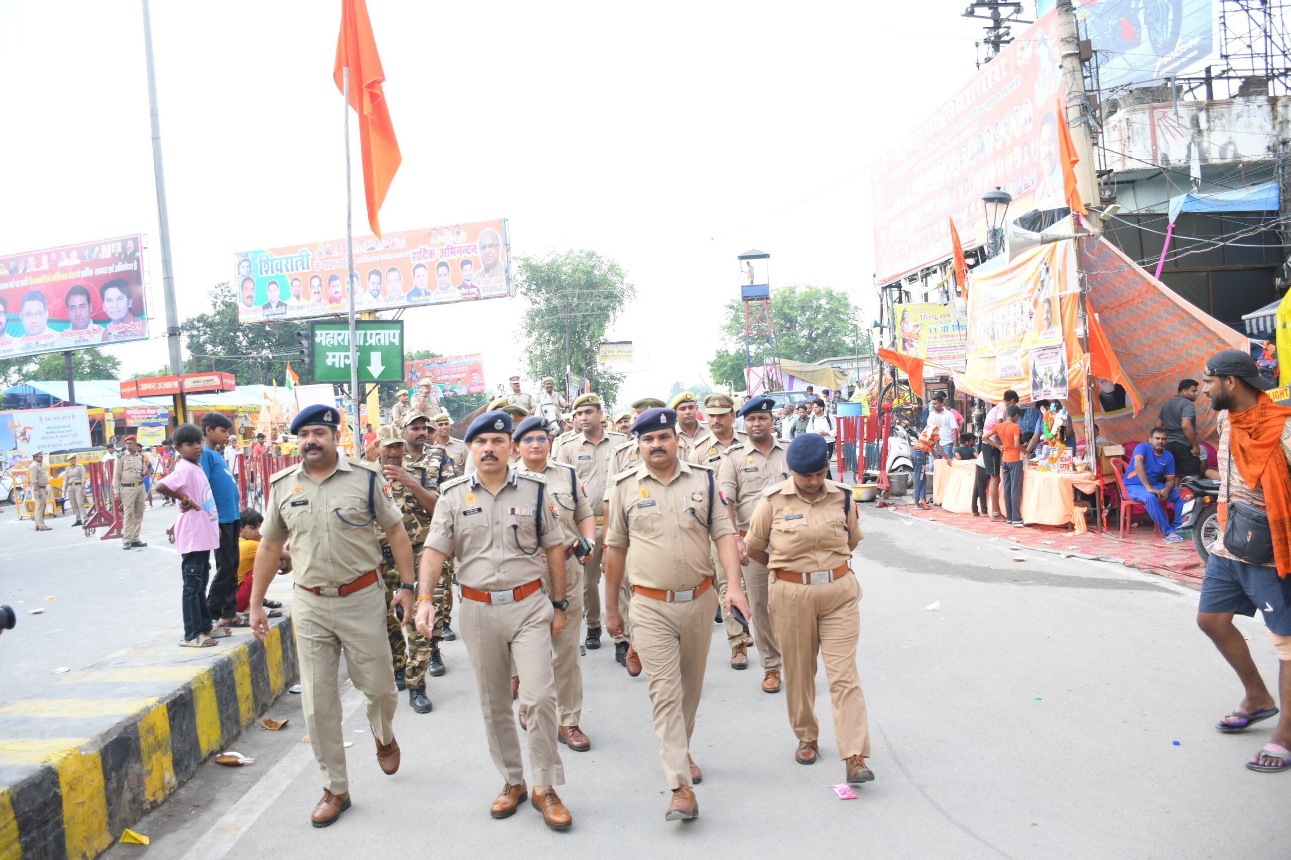 meerut news श्रावण मास कांवड़ यात्रा के सफल, सुरक्षित एवं शांतिपूर्ण आयोजन के उद्देश्य से वरिष्ठ पुलिस अधीक्षक डॉ. विपिन ताडा द्वारा पुलिस अधीक्षक अपराध एवं पुलिस अधीक्षक यातायात के साथ बेगमपुल से गढ़ रोड तक का पैदल भ्रमण कर यात्रा मार्ग का स्थलीय निरीक्षण किया गया।