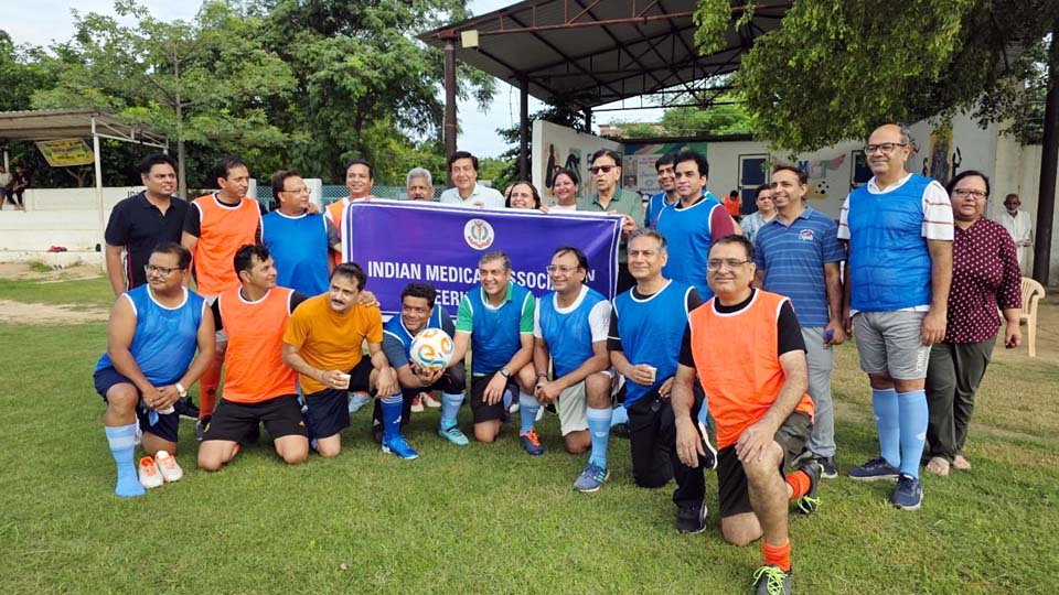 meerut news आईएमए मेरठ के तत्वावधान में रविवार को आयोजित हुए फुटबॉल टूर्नामेंट में डॉक्टर्स, उनके परिजनों और बच्चों ने पूरे जोश और उत्साह के साथ भाग लिया। टूनार्मेंट के मुख्य मुकाबले में आईएमए प्रेसिडेंट इलेवन ने कड़े संघर्ष के बाद सेक्रेटरी इलेवन को 2-1 से हराकर जीत हासिल की। मुख्य मुकाबले में प्रेसिडेंट डॉ. अनुराग बाजपेयी के नेतृत्व वाली टीम और सेक्रेटरी डॉ. संजीव त्यागी की टीम आमने-सामने थी। मैच में तेज गति, कौशल और बेहतरीन टीमवर्क का शानदार प्रदर्शन देखने को मिला।