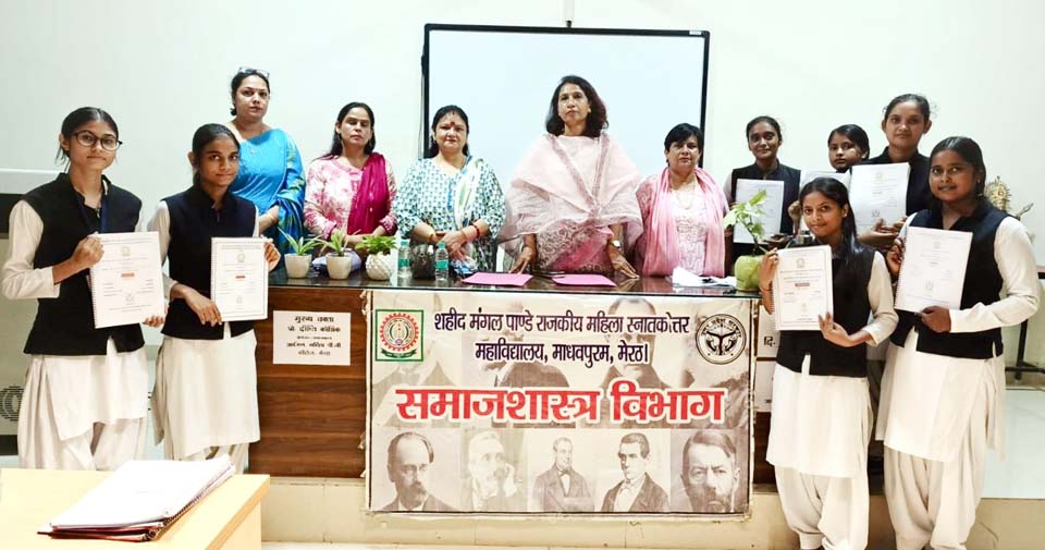 meerut news शहीद मंगल पांडेय राजकीय स्नातकोत्तर महिला महाविद्यालय के समाजशास्त्र विभाग द्वारा विविध आयोजन किए गए। महाविद्यालय प्राचार्य प्रो. अंजू सिंह तथा प्रो. अनीता राठी के संरक्षण में इस्माइल नेशनल महिला पीजी कॉलेज और श.मं.पा. राजकीय स्नातकोत्तर महिला महाविद्यालय के समाजशास्त्र विभाग द्वारा शैक्षणिक और शोध गुणवत्ता को बढ़ाने के लिए एक एमओयू हस्ताक्षरित किया गया। महाविद्यालय से समाजशास्त्र विभागाध्यक्ष प्रो. लता कुमार और इस्माइल नेशनल महिला पीजी कॉलेज से प्रो. दीप्ति कौशिक, विभागाध्यक्ष-समाजशास्त्र विभाग ने एमओयू पर हस्ताक्षर किए। समाजशास्त्र विभागाध्यक्ष डा. लता कुमार ने महाविद्यालय प्राचार्य का एक पौधे से अभिनंदन किया। कार्यक्रम में सलोनी वर्मा, खुशी सिंह, प्रिया पाल, मुस्कान, अलीशा, आक्षी सहित बीस छात्राएँ उपस्थित रहीं।
