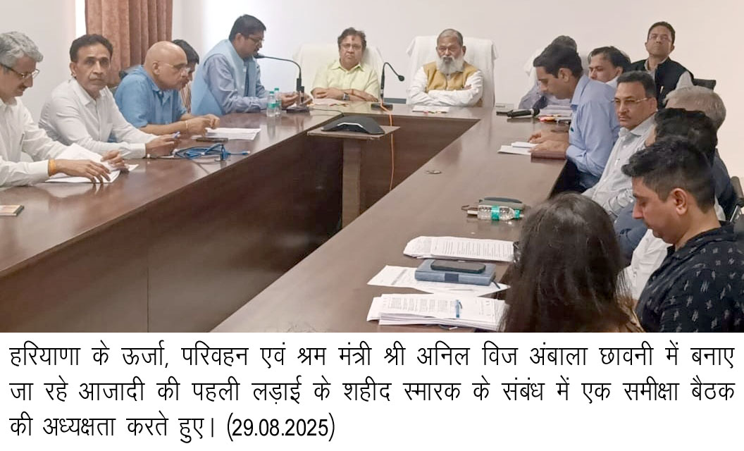 Chandigarh News: हरियाणा के ऊर्जा, परिवहन एवं श्रम मंत्री श्री अनिल विज ने आज मुख्य सचिव श्री अनुराग रस्तोगी एवं विभिन्न शीर्ष अधिकारियों के साथ अम्बाला छावनी में सन् 1857 में आजादी की पहली लड़ाई को समर्पित शहीद स्मारक के निर्माण कार्य को लेकर निरीक्षण किया और समीक्षा बैठक भी की।