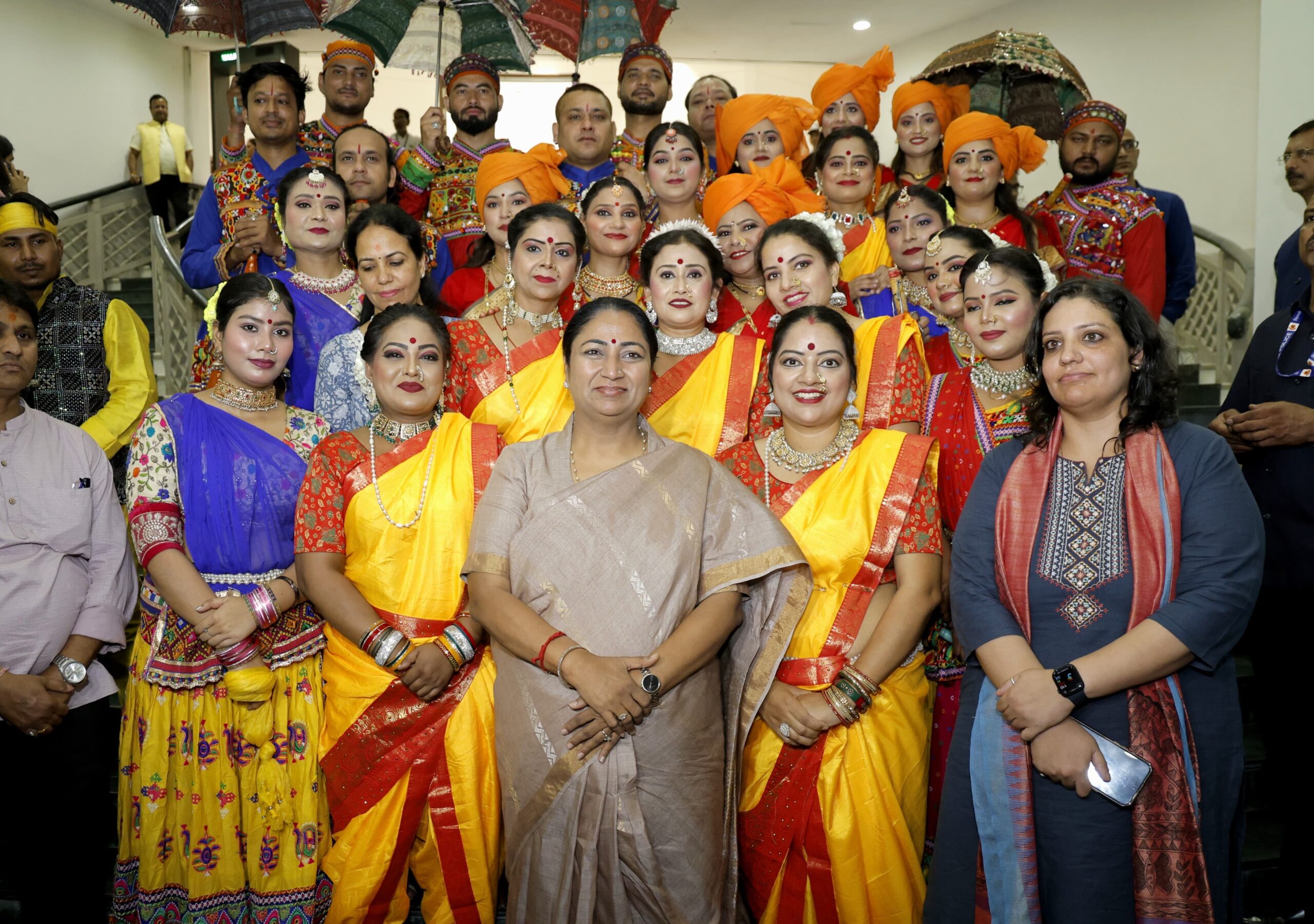 कार्यक्रम के दौरान, महाराष्ट्र के पारंपरिक लोकनृत्य लावणी, हुडो, लेजिम और गुजरात के गरबा, डांडिया रास की शानदार प्रस्तुतियां दी गईं। इन नृत्यों ने दर्शकों को मंत्रमुग्ध कर दिया। इस अवसर पर एक विशेष प्रदर्शनी भी आयोजित की गई, जिसमें इन दोनों राज्यों की कलात्मक परंपराओं और सांस्कृतिक धरोहर को प्रदर्शित किया गया।