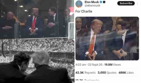 वीडियो फुटेज में दोनों को एक-दूसरे के बगल में बैठे देखा गया, जहां ट्रंप ने मस्क को गले लगाते हुए कुछ कहा। लिप रीडर के विश्लेषण के अनुसार, ट्रंप ने कहा, “मिस्ड यू” (मैंने तुम्हें मिस किया)। मस्क ने बाद में सोशल मीडिया पर एक फोटो शेयर की, जिसमें लिखा था, “चार्ली के लिए”। यह पोस्ट तुरंत वायरल हो गई और लाखों व्यूज बटोर ली।