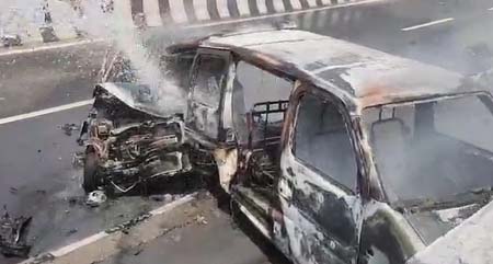 गाजियाबाद के चीफ फायर आॅफिसर राहुल पॉल ने बताया कि फायर विभाग को दोपहर 2:26 बजे ट्रैफिक पुलिस की ओर से इस दुर्घटना की जानकारी दी गई थी। टीम ने घटनास्थल पर पहुंचकर तुरंत आग पर काबू पाया, लेकिन तब तक एक व्यक्ति की जलकर मौत हो चुकी थी।